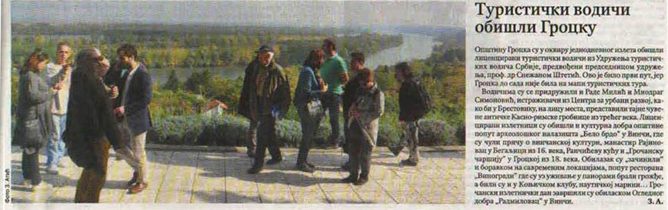 Dnevne novine Politika su objavile vest o radionici za turističke vodiče koja je održana u saradnji sa Udruženjem turističkih vodiča Srbije ispred antičke grobnice u Brestoviku.