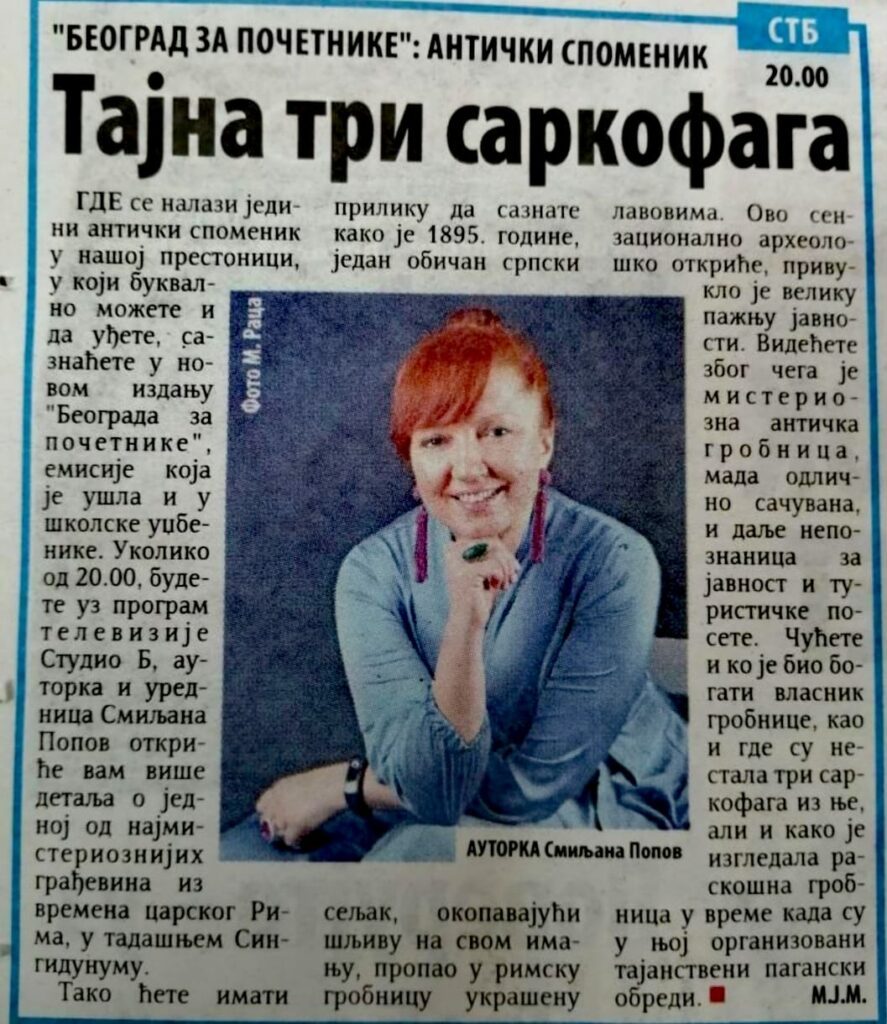 Večernje Novosti su objavile najavu za reprizu emisije o antičkoj grobnici u Brestoviku…